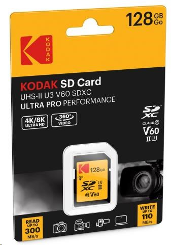 Kodak paměťová SD karta 128GB UHS-II U3 V60 Ultra Pro