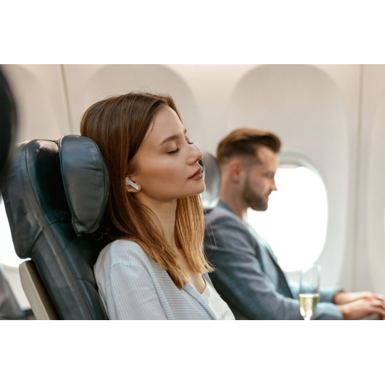 Dokonalé potlačení okolního hluku až o 40 dB díky 3 speciálním mikrofonům v každém sluchátku. Kombinace dovnitř a ven směřujících mikrofonů spolehlivě potlačuje okolní hluk v širším rozsahu než klasické ANC, aniž by došlo ke zkreslení zvuku.