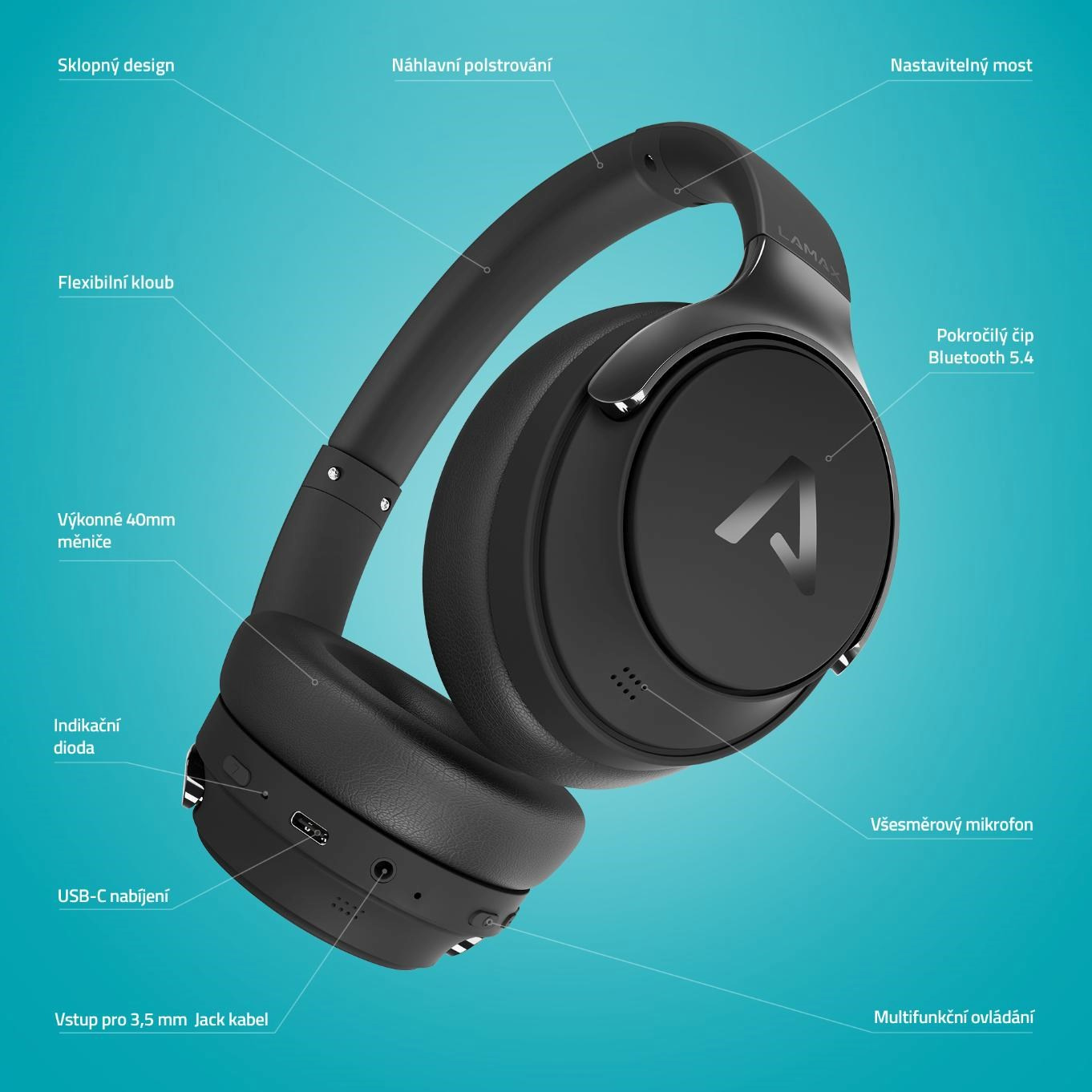 Typ sluchátek:Plná; Konstrukce:Uzavřené; Využití:Poslech hudby; Konektivita:Bluetooth; Verze Bluetooth:5.3; Mikrofon; Konstrukce mikrofonu:Integrovaný; Podporované kodeky:AAC; Funkce:ANC (Aktvní potlačení hluku); Způsob nabíjení:USB-C; Platforma:PC / mobil; Hmotnost (g):260; Výdrž baterie (h):35; Rozhraní sluchátek:Bluetooth.... více