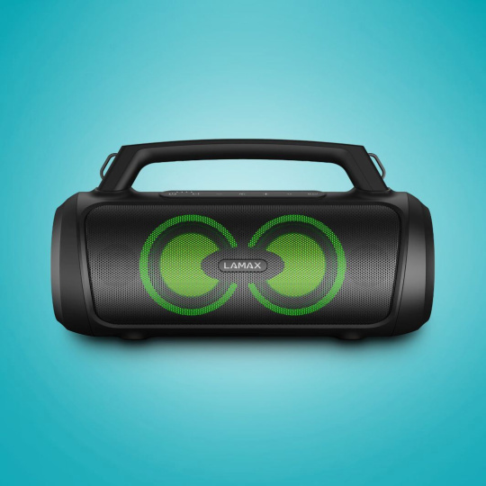 LAMAX PartyGo1 Play dokonale klame svým kompaktním tělem, v němž se ukrývá zvuk o výkonu 50 W, který spolehlivě rozproudí každou party. LAMAX BeatBass® technologie přehraje zvuk v perfektní kvalitě. Bohatý a silný sound ještě podporuje možnost zapnutí zvýraznění basů na ovládacím panelu a ovládání hlasitosti. Když budeš chtít rozjet ještě větší mejdan, připoj si jednoduše pomocí technologie True Wireless další reprák PartyGo1 Play.