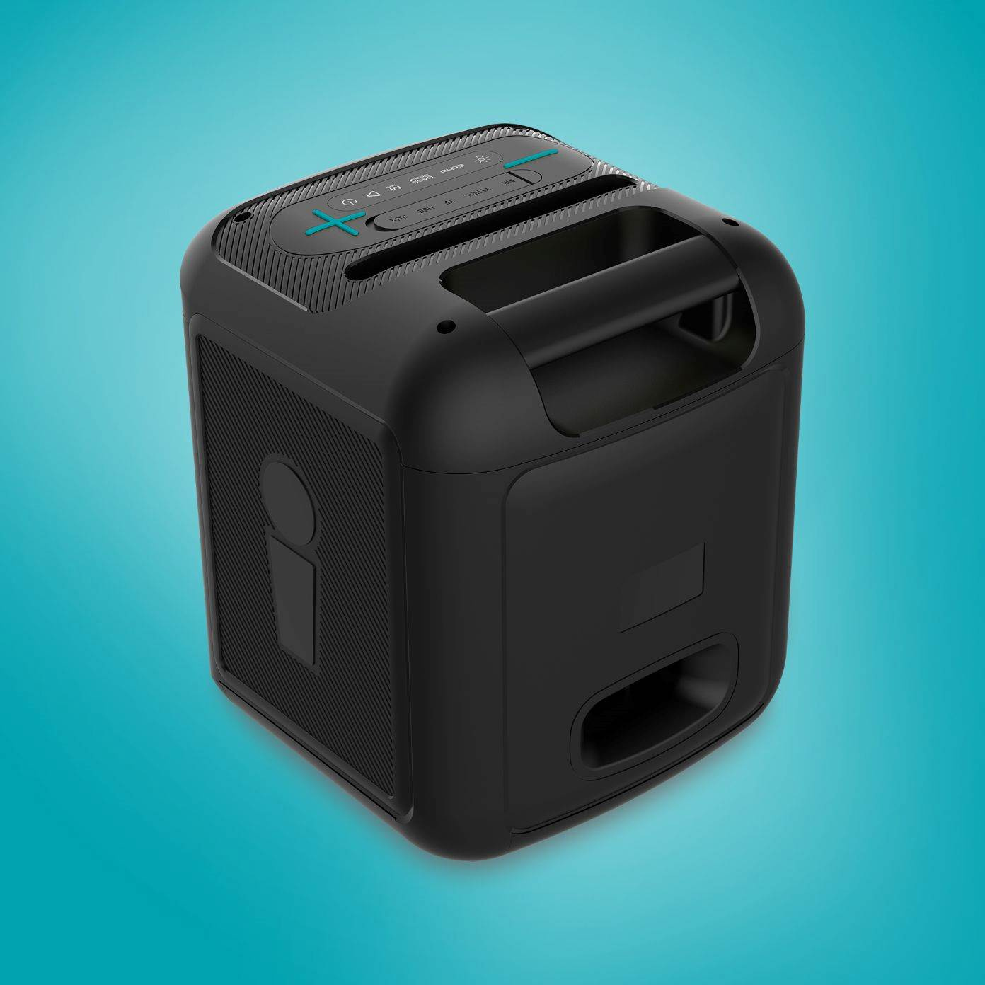 Reprák přehraje playlisty nejrůznějších formátů (MP3 a WAV) a hodně variabilní je i co se připojení týče, takže podporuje micro SD, USB-A, AUX a nechybí ani vstup pro mikrofon. Pokud zrovna nemáš po ruce vlastní muziku, integrované FM rádio ti naladí oblíbenou stanici a zábava může začít. Rozproudíš ji ještě víc, když vezmeš do ruky přibalený bezdrátový mikrofon a budeš moderovat, zpívat nebo třeba rapovat.