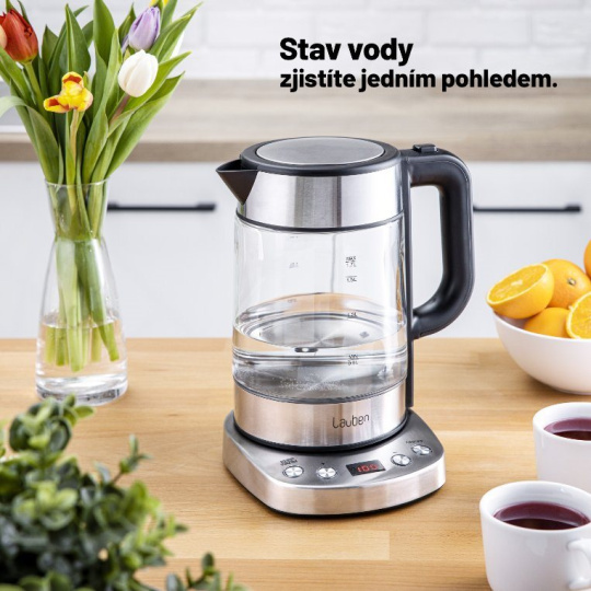 Teplota přesně, jak má býtLauben Electric Kettle EK17GS je designová rychlovarná konvice s nastavitelnou teplotou ohřevu vody a Keep Warm funkcí. Možnost nastavení teploty vody v kuchyni jistě oceníte. Potřebujete zalít zelený čaj? Už nikdy nemusíte čekat, až voda vychladne, stačí si preferovanou teplotu zvolit na přehledném LCD displeji.