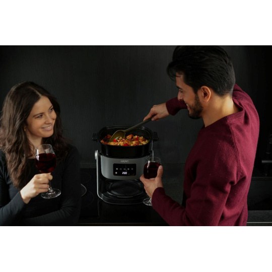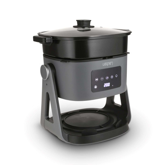 Zdravé vaření nebylo nikdy snazší a nemusíte se vzdávat ani oblíbených smažených dobrot. Horkovzdušná fritéza s grilem Lauben Glass&Grill Air Fryer 3in1 5500BG přináší zcela novou dimenzi přípravy pokrmů využívající až o 80 % méně tuku. Unikátní skleněný koš s viditelností 360° zajišťuje ničím nenarušenou chuť a vůni jídla, zároveň umožňuje jeho snadnou kontrolu během přípravy, a to i díky vnitřnímu osvětlení. Vaření urychluje 6 přednastavených programů, ale teplotu a čas lze nastavit i manuálně na digitálním dotykovém displeji. O rovnoměrné propečení se stará infračervené světlo, pomocí otočné horní části o 180° spolu s použitím přiložené grilovací či hluboké pánve získáte více možností přípravy. Fritovací koš je chráněn bezpečnostním krytem proti popálení, pachový filtr zase chrání domácnost před nepříjemným odérem. Čas ušetříte při vaření i údržbě, příslušenství stačí jen vložit do myčky. Praktické rady pro použití přináší video tutoriál.