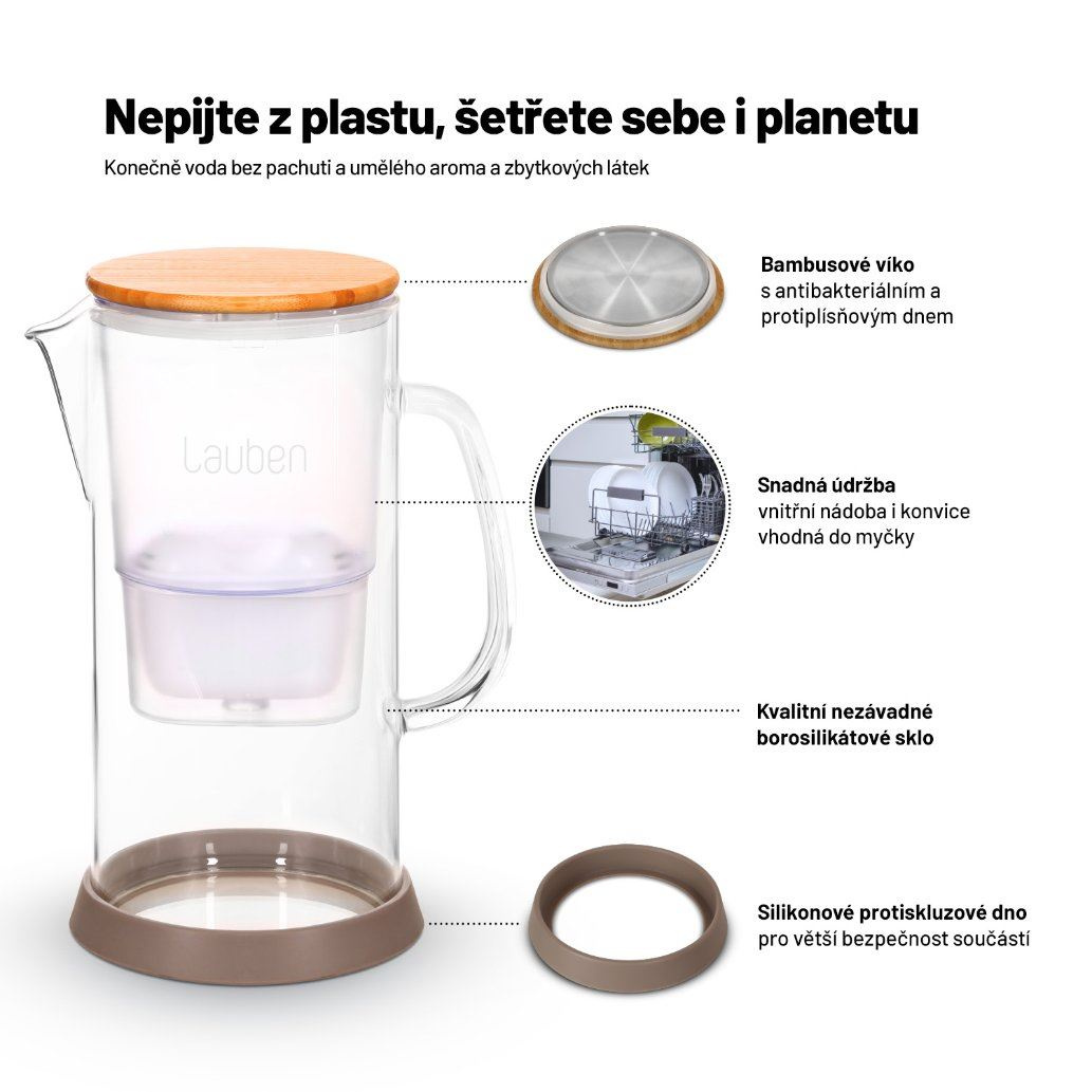 Lauben Glass Water Filter Jug 3200GW Konec doby plastové – konečně skleněná filtrační konvice