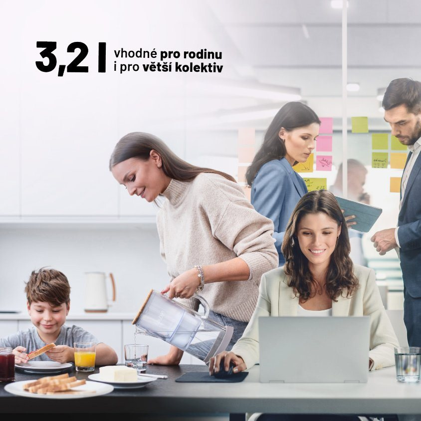 Filtr o kapacitě 160 l, což při běžné spotřebě představuje výdrž přibližně měsíc, je kompatibilní s dalšími nejprodávanějšími značkami filtrů a rovněž zajišťuje, že se ve vodě netvoří vodní kámen.