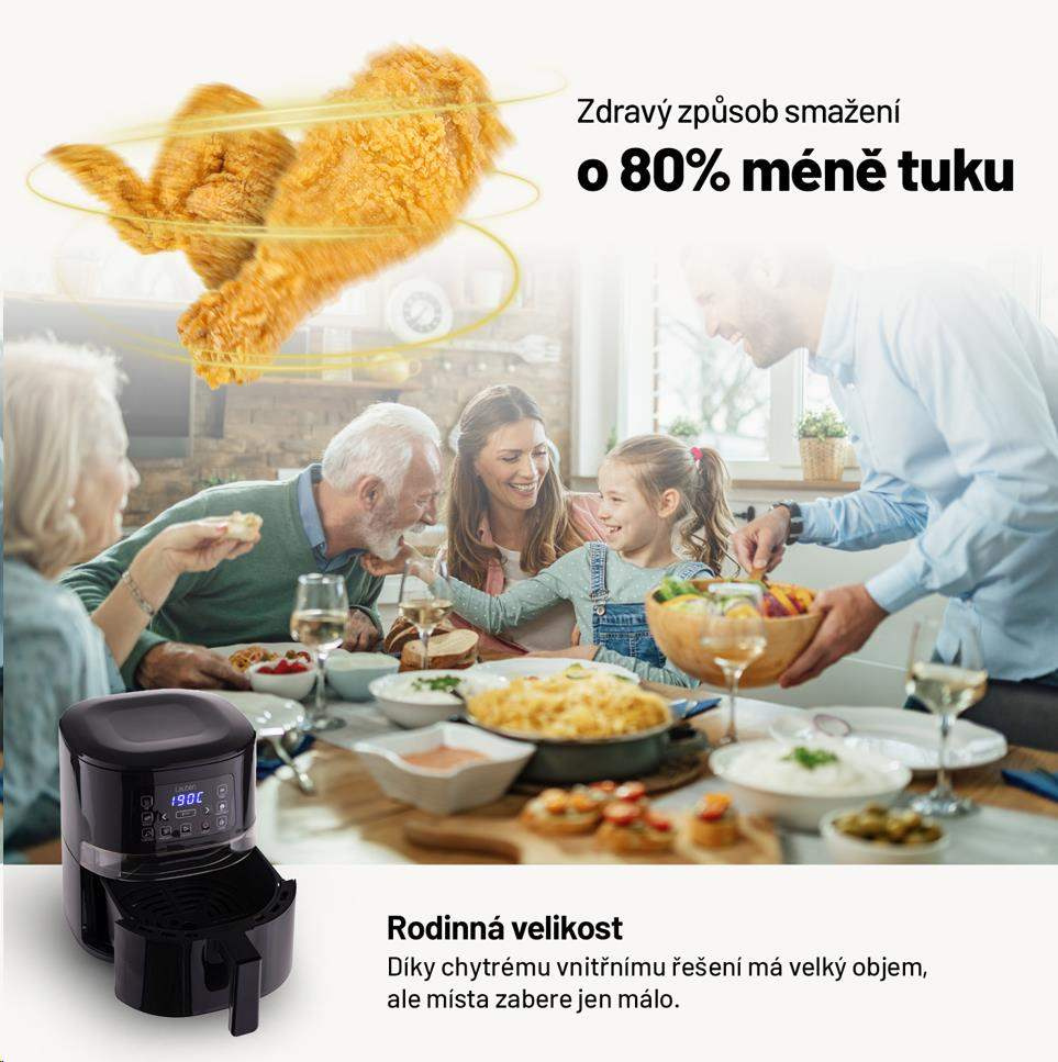 Fritéza má vnitřní kapacitu 4l a připravíte v ní jídlo pro celou rodinu.