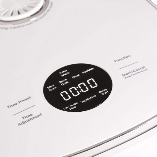 Rýžovar disponuje 6 přednastavenými funkcemi pro snazší přípravu jídel - Slow cook, Quick cook, Polévka, Kaše, Low Sugar rýže, Zelenina.