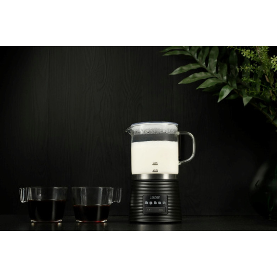 Milovníci nápojů s dokonale našlehaným mlékem si nyní díky napěňovači Lauben Glass Milk Frother 600BG vychutnají i v domácím prostředí či v práci mléčnou pěnu jako od baristy. Skleněná nádoba umožňuje sledovat proces přípravy, je zdraví nezávadná a snadná na údržbu, stačí omýt nebo vložit do myčky. Údržbu usnadňuje i odnímatelné míchátko. Pro lepší manipulaci má základna schopnost otáčet se o 360°. Pomocí variace módů přístroj zvládá teplé i studené napěňování či míchání a speciální mód vykouzlí horkou čokoládu. Svými baristickými schopnostmi nevyrušíte spící rodinu ani kolegy v kanceláři, neboť provoz napěňovače je velmi tichý. Tento praktický designový kousek ohřeje 250 ml a napění 150 ml mléka. Protiskluzové nožičky drží přístroj na místě, k bezpečnosti přispívá i funkce automatického vypnutí.