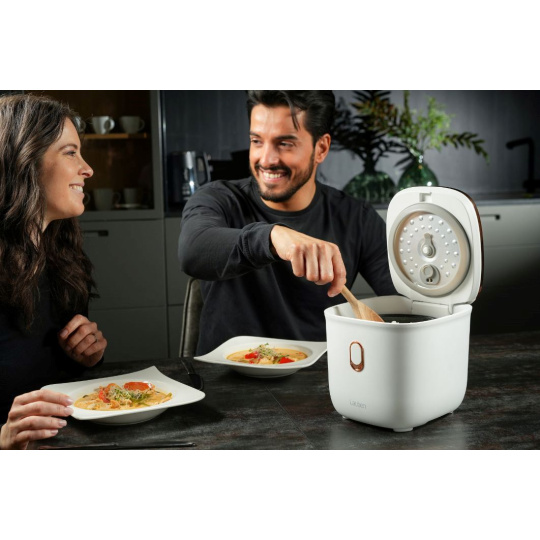 Každý, kdo si potrpí na prvotřídně připravené pokrmy a zároveň nechce trávit mnoho času v kuchyni, by se měl vybavit multifunkčním rýžovarem. Lauben Multifunction Rice Cooker 1200WR připraví po stisku jediného tlačítka všechny druhy rýže tím správným způsobem. Navíc disponuje 6 přednastavenými funkcemi – Rice, Porridge, Soup, Re-heat, Baby Porridge, Coarse Grains – pro snadnou přípravu polévek, kaší, obilovin či opětovný ohřev. Zdá se vám program krátký? Upravte si ho, některé umožňují manuální nastavení času.