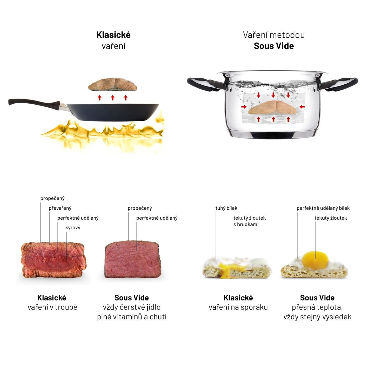 Metoda sous vide při vaření zachovává všechny živiny a vitaminy, k přípravě jídla nepotřebujete žádný tuk.