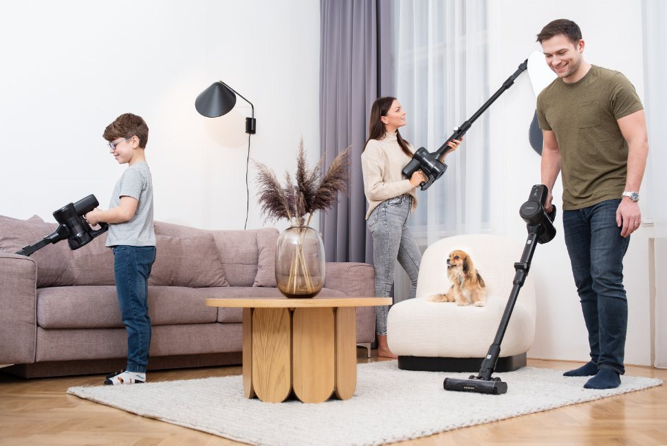 Univerzální motorizovaný kartáč se hodí pro všechny druhy podlah včetně těch, na nichž se pohybují domácí mazlíčci. Nejen jejich chlupy bezpečně odstraní hlavice se systémem proti namotávání vlasů. Úklid usnadňuje flexibilní tyč s kloubem a sběrná nádoba umístěná v horní části, vysavač tak jednoduše zajede i pod nábytek a do užších prostor. Díky provedení bez kabelu a možnosti úpravy na ruční vysavač lze přístroj využít kdekoliv, například při čištění auta. Vydrží až 35 minut na jedno nabití.