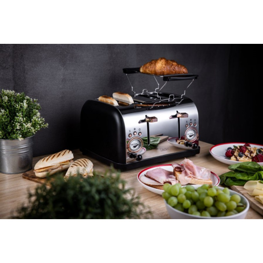 Už žádné hektické snídaně plné hádek o to, kdo si dá první křupavý toast či croissant. Topinkovač Lauben 4 Slice Toaster 1500BC připraví křupavé pečivo pro celou rodinu a vy si tak užijete poklidný start nového dne. Topinkovač opeče najednou toasty ve čtyřech slotech a na dvou ohřívacích mřížkách, jež jsou součástí balení, lze rozpéct třeba croissanty, které tak budou jako čerstvě upečené. Zvolit lze z 6 stupňů intenzity a budete-li potřebovat opékání zastavit, topinkovač disponuje funkcí okamžitého manuálního ukončení.