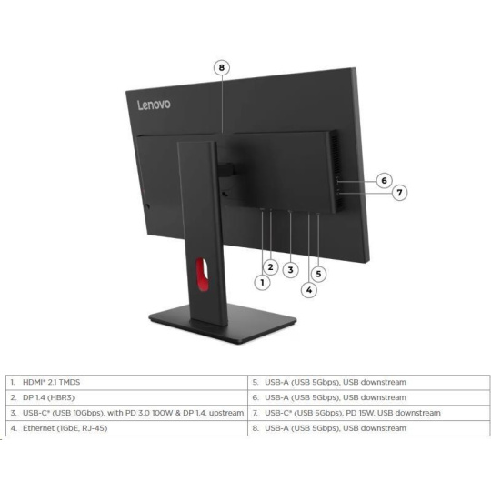 | Konektivita | 1x HDMI 2.1 TMDS, 1x DP 1.4 (HBR3), 1x USB-C (5Gbps, DP 1.4 Alt Mode HBR3) |