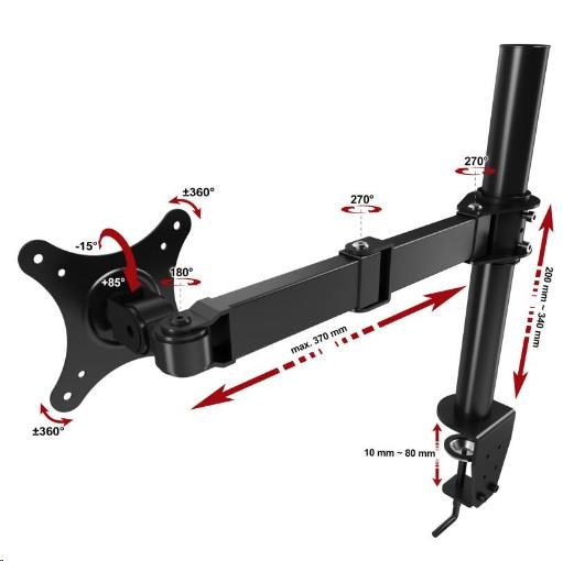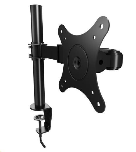 Kompletní specifikace Kvalitní stolní držák poctivé konstrukce Ergosolid NF11 Snadno polohovatelný stolní držák na monitory 10-30", VESA 75x75 a 100x100, otočný, sklopný, nastavení výšky, pivot, nosnost 10kg Nabízíme Vám nový stolní držák na monitory s inovovaným systémem pro nastavení výšky, ke kterému nebudete již potřebovat nářadí. Držák umožňuje nastavení polohy monitoru 3D - otáčení do stran, náklon, rotace, výška a vzdálenost. Uchycení je možné na okraj veškerých stolových desek o síle 20-100mm. Držák podporuje VESA 75x75 a 100x100, nosnost je 10kg. Barevné provedení černé. Záruka 3 roky. Poctivý držák na monitory s úhlopříčkou 10-30 Technické údaje: nosnost 10kg na monitory s úhlopříčkou 10" až 30" podpora VESA 75x75 a 100x100 snadné výškové polohování 200÷340mm nastavení vzdálenosti od nosníku až 435mm otáčení do stran +/- 360° náklon +85° až -15° rotace monitoru - nastavení obrazovky na šířku nebo na výšku systém vedení kabeláže instalace na okraj stolu na všechny stolové desky o průměru 20÷100mm poctivá pevná konstrukce s důrazem na detaily materiál ocel barevné provedení černé záruka 3 roky.