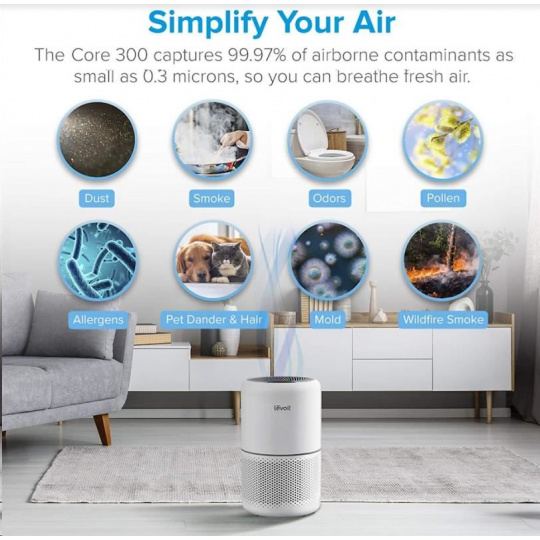 Chcete mít doma čistý vzduch jako prevenci před onemocněním horních cest dýchacích nebo jste alergik či astmatik? Čistička vzduchu Levoit CORE 300-RAC díky vysoce kvalitní 3 vrstvé filtraci s filtrem HEPA H13 a maximální cirkulaci vzduchu patentované technologie VortexairTM odstraní až 99,97% škodlivých látek a nečistot, které byste jinak dýchali. Ovládání čističky vzduchu je vskutku jednoduché. V noci oceníte noční režim podpořen technologií QuietKEAPTM, díky které provoz produkuje hluk pouze 24B a váš spánek tak nebude rušen.
