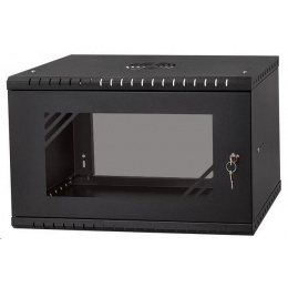 LEXI-Net 19" nástěnný rozvaděč Basic 6U 520x450, skleněné dveře, bez zad, rozložený, černý