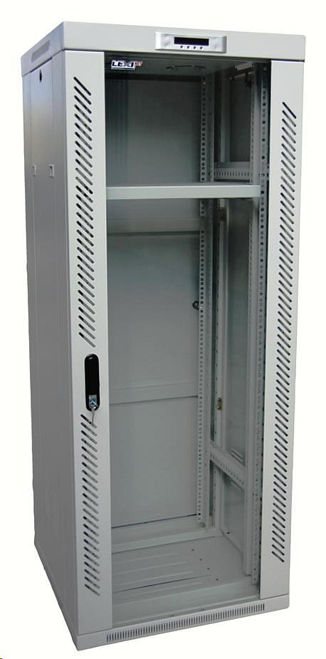 LEXI-Net 19" stojanový rozvaděč 45U 800x800 rozebiratelný, ventilace, termostat, kolečka, 600kg, sklo, rozložený, šedý