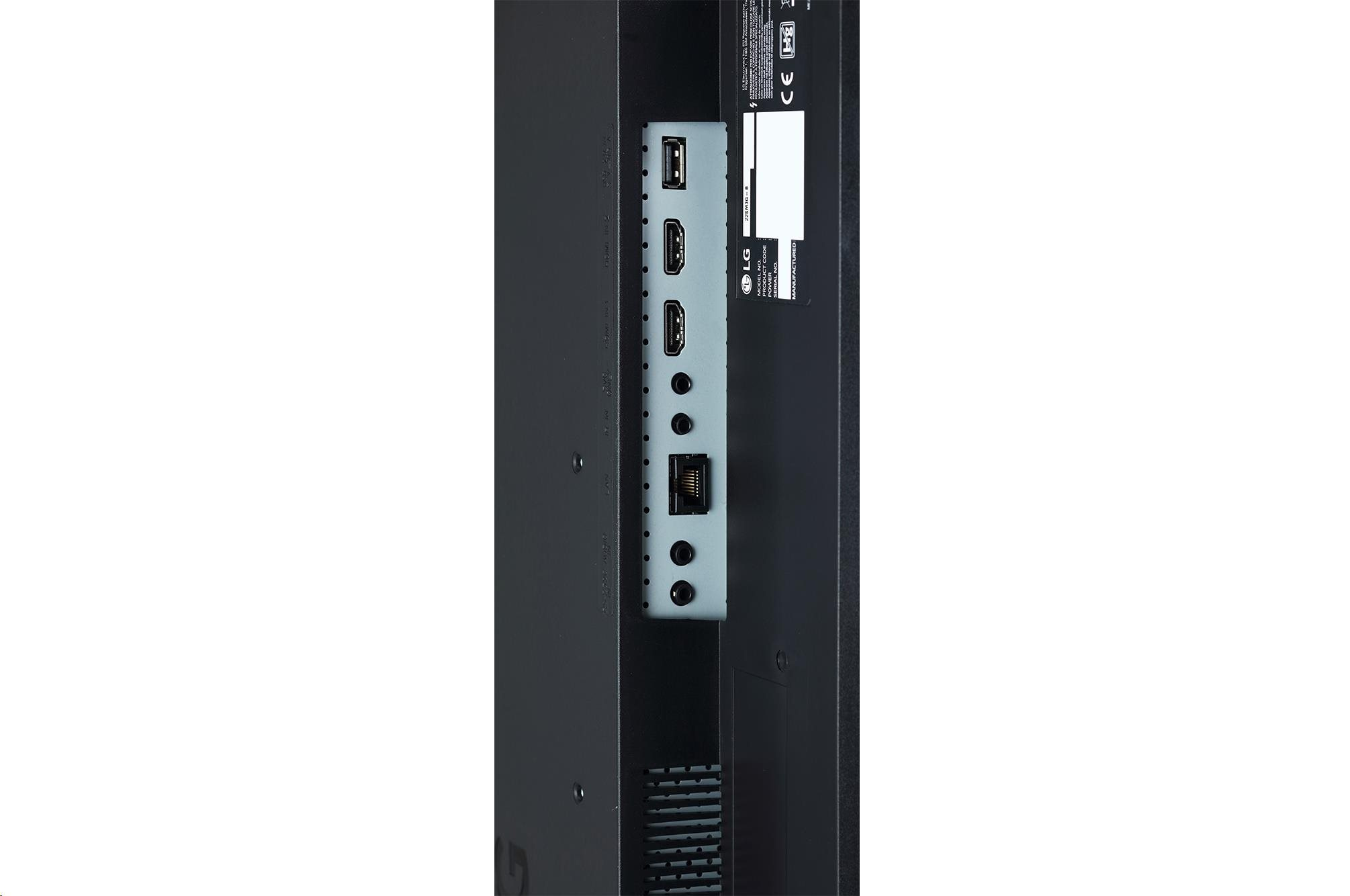Brightness(Typ.) : 250 cd/m2 Bezel : 16.3mm Depth : 53.8mm Interface : HDMI(2) / USB 2.0 / RS232C / RJ45 / IR / Audio USB Plug & Play, Built-in Wi-Fi.