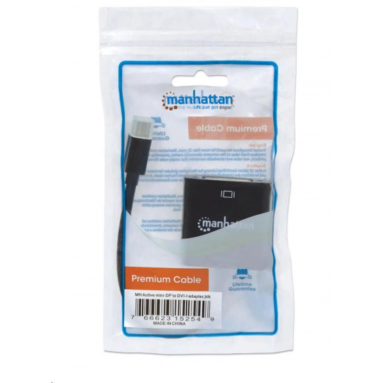Manhattan Active Mini DisplayPort to DVI-I Adapters establish a fast and convenient connection between a media source equipped with a Mini DisplayPort and a DVI display cable. This active adapter overcomes the non-DP++ (dual-mode) video/graphics card's limitations and converts the signal to display. It is ideal for multi-screen gaming, digital signage in retail displays, financial market and other applications. Nickel-plated contacts and full shielding help Manhattan Active Mini DisplayPort to DVI Adapters provide clear and stable video transmissions in UHD, home and office multimedia applications. Durable PVC jackets and molded boots with strain relief help ensure connections remain uninterrupted and steady.