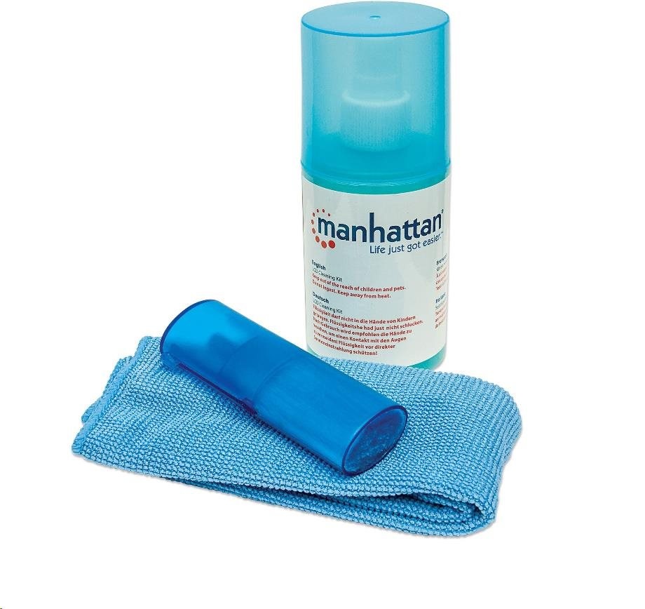 For best results, spray cleaner onto microfiber cloth, gently wipe then quickly dry any excess liquid from LCD surface. Safe for frequent use on LCD surfaces to help restore and maintain brightness and clarity. Manhattan does not recommend that cleaning solution be directly applied to any LCD surface. Not recommended for use on anti-glare, privacy or polarized materials.