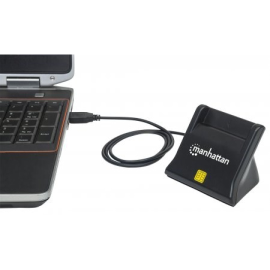 Ideal for desktop and notebook computers without built-in readers, the Manhattan USB Standing Smart/SIM Card Reader is easily installed using any USB port and the included software and driver CD. Plug and play with Windows and Mac compatibility, it requires no external power supply or cables for a simple USB connection.