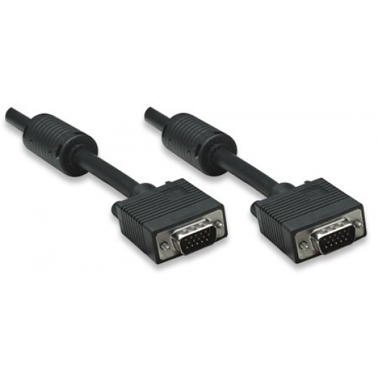 MANHATTAN kabel SVGA k monitoru s feritovými jádry, HD15 Male / HD15 Male, 1.8m, Black