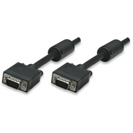 Manhattan SVGA Cables easily connect a monitor with a desktop or notebook computer. Ideal for use with video splitters, KVM switches and any HD15-equipped display, computer or device, Manhattan SVGA Cables are engineered and constructed of quality materials to deliver dependable transmissions in video applications. Full foil and braided shielding with ferrite cores help minimize EMI interference and mini-coax (RGB) with paired video wire construction combine to provide maximum conductivity and clear, crisp images with reduced distortion over extended distances.