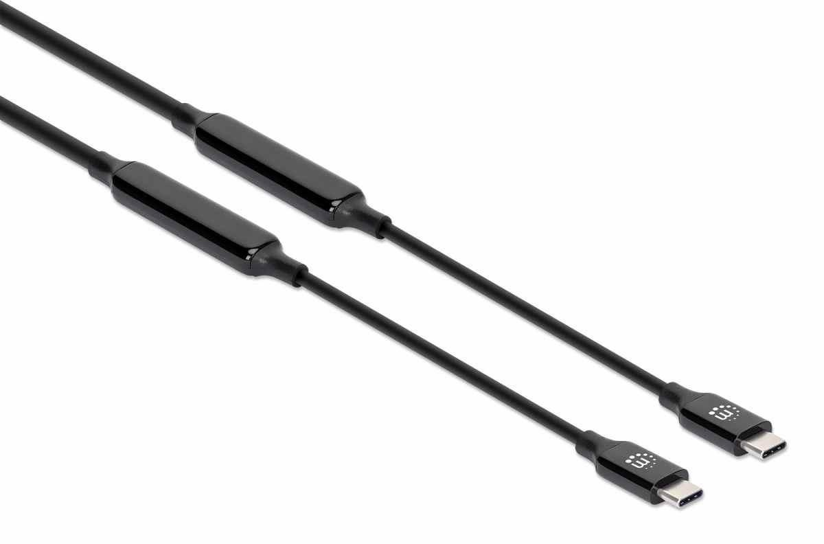 MANHATTAN Kabel USB-C Male to Male, USB 3.2 Gen 2 Type-C Active Device Cable, 3m, pozlacené koncovky, černá