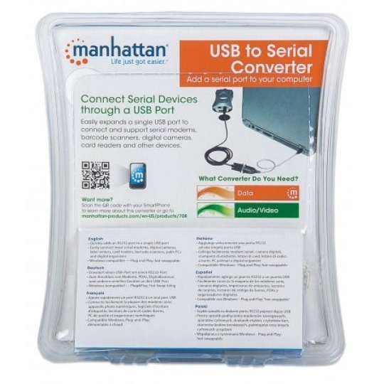 Chipsets PL-2303HXD and FTDI FT232RL configurations are also available at www.ManhattanProducts.com