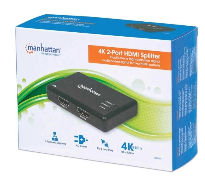 MANHATTAN Splitter HDMI 2 porty, 4K@30Hz, černá