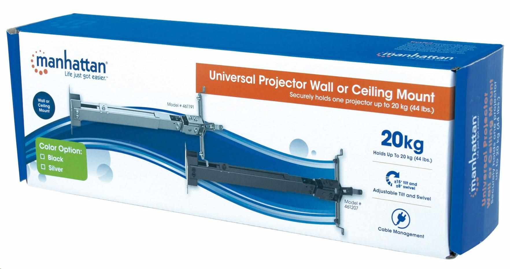 Constructed of lightweight, quality materials, Manhattan Universal Projector Ceiling or Wall Mounts fit a range of models with a secure, confident and balanced overhead or wall installation. In some cases, their internal cable management helps conceal unsightly cords and connections for a professional, finished appearance.