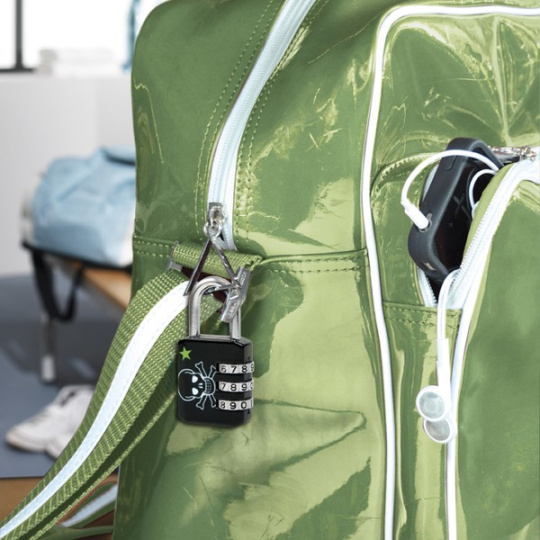 Visací kombinační zámek 1509EURDSKULL pro všeobecnou ochranu. Zinkové tělo zámku je o šířce 30mm. Ocelový třmen o průměru 5mm je dlouhý 22mm a je vyroben z pochromované oceli a nabízí odolnost proti řezání a řezání. Vlastní nastavení 3-místné kombinace zámku nabízí pohodlí bez klíče.