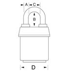 - Visací zámek o šířce 54 mm z vrstvené oceli.