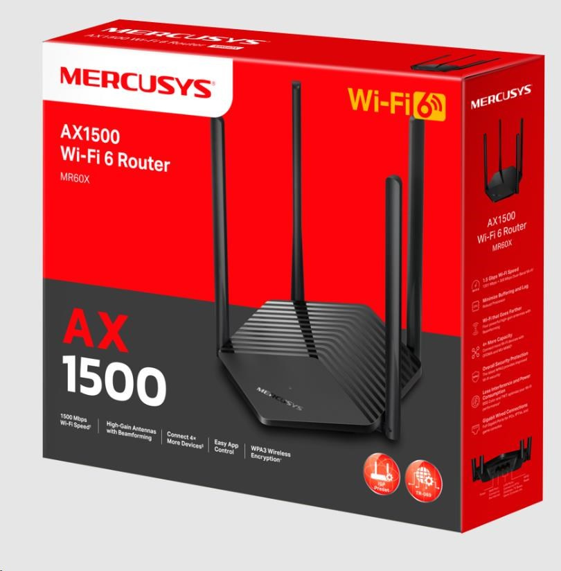 MERCUSYS MR60X WiFi6 router (AX1500,2,4GHz/5GHz,2xGbELAN,1xGbEWAN)