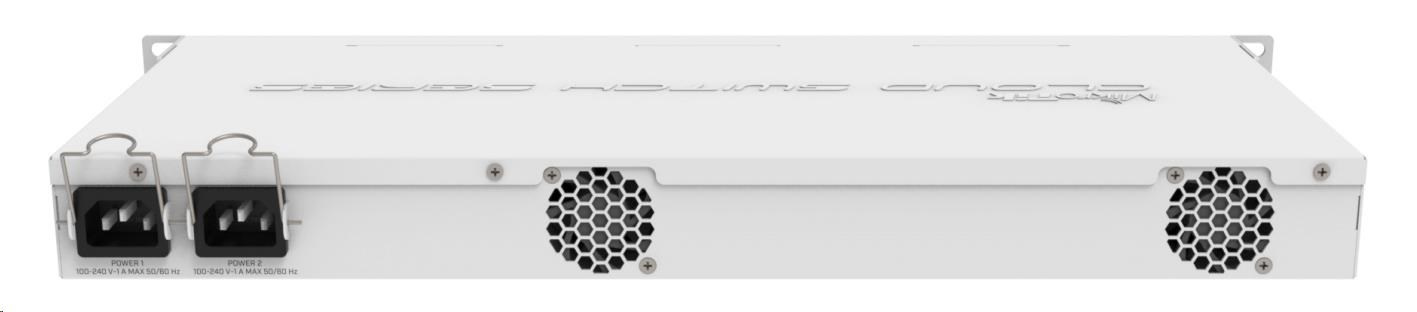 The device comes in a 1U rackmount case with two 100-240 V power supplies with failover functionality. A RJ45 console port is available for management and debugging, and a mode button can be customised to execute any RouterOS commands. The device has a “Dual boot” feature that allows you to choose between two operating systems - RouterOS or SwOS.
