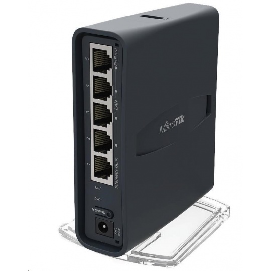 hAP ac lite je nový kompaktní router podporující standard 802.11ac. Je integrována jak 2.4GHz tak 5GHz Wi-Fi. (2.4GHz využívá 802.11b/g/b, dual chain 1.5dBi anténa, 300Mbps / 5GHz jede na 802.11ac a nechybí ani zpětná kompatibilita s 802.11a/n., single chain - 2dBi anténa, 433Mbps). Tato duální wifi tak dosahuje celkových přenosových rychlostí až 733Mbps. Procesor je taktován na 650MHz a sekunduje mu 64MB RAM operační paměti typu DDR. K dispozici je celkem pět ethernetových portů 100Mbps s podporou PoE in(port1) taktéž out (port5).