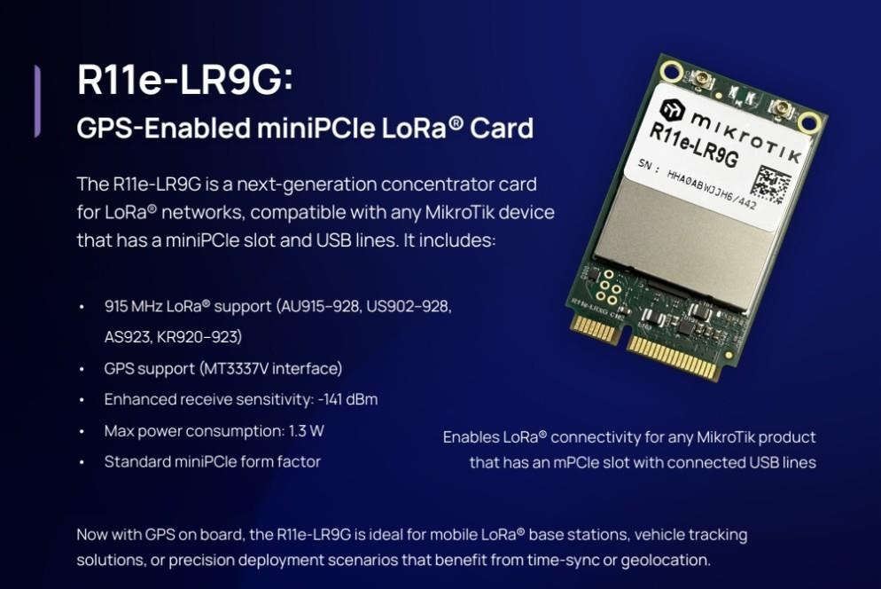 MikroTik R11e-LR9G miniPCIe LoRa® adaptér s GPS