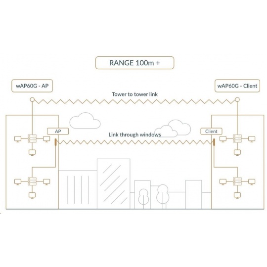 Instalace zařízení je velmi jednoduchá a díky 60° integrované anténě jej lze nainstalovat na zeď / stožár nebo přímo za okno pomocí přiloženého plastového podstavce. wAP 60G AP s L4 licencí podporuje až 8 připojených klientů na vzdálenost 100m+