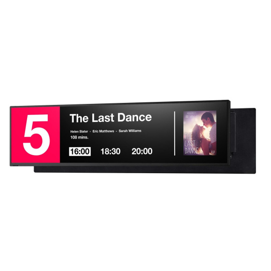 Mimořádně široký poměr stan obrazovky 16:4 s výškou displeje pouze 28.9 cm umožňuje instalaci ve stísněných prostorech a zajišťuje ostrý a příjemný obraz.