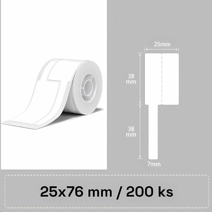 Balení obsahuje 1x roli bílých samolepících štítků Niimbot na kabely o rozměru 25x76mm – 200ks.
