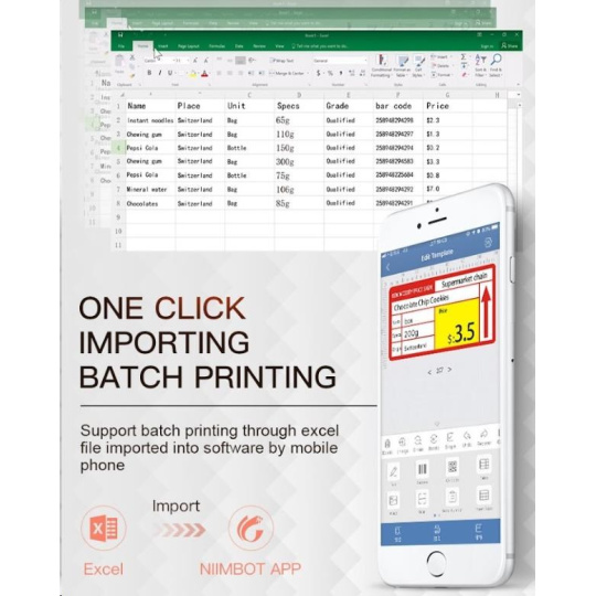 Model Niimbot B21S umožňuje také tisk přímo z PC. Do aplikace Niimbot si také můžete třeba naimportovat připravená data z Excelu.
