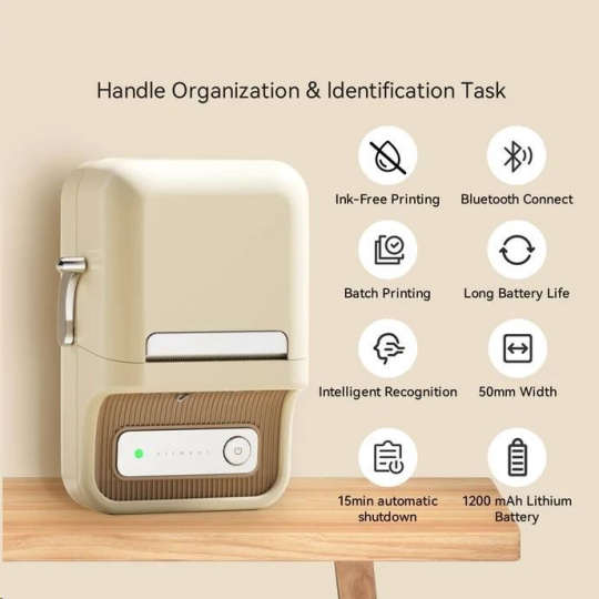 Zapomeňte na zdlouhavé a komplikované procesy tisku etiket. S NIIMBOT B21S je tisk etiket hračkou díky její bezdrátové technologii a vynikajícím funkcím. Tato přenosná tiskárna etiket je vybavena dobíjecí lithiovou baterií, která vám umožní tisknout kdekoli a kdykoli budete potřebovat po dobu 4 až 5 hodin. S NIIMBOT B21S můžete jednoduše označovat věci v kanceláři, škole, obchodě a na mnoho dalších místech. Její kompatibilita s PC a se systémy Android a iOS znamená, že můžete tisknout přímo ze svého smartphonu nebo tabletu, což zajišťuje maximální pohodlí a efektivitu.