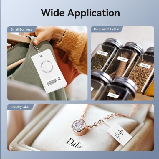 Při navrhování štítku můžete použít různá písma, tvary, ikony, velikosti a formáty, abyste si vytiskli etikety nebo štítky podle své představy. Můžete importovat fotografie z vašeho telefonu nebo obrázky z internetu, aby byl design jedinečnější. Bezplatná aplikace pro iOS nebo Android nabízí více než 1500 ikonek, více než 100 rámečků, 19 fontů písma a umožňuje také tisk QR kódů. Můžete si vybrat z různých stylů písma, velikostí a formátů, abyste si vytiskli etikety nebo štítky přesně podle své představy. Tiskárna automaticky rozezná vložené etikety a aplikace přizpůsobí rozměry pro tisk.
