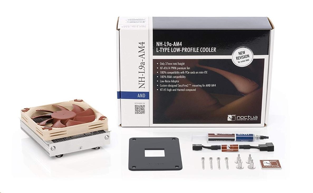 NH-L9a-AM4 je vysoce kompaktní, tichý nízkoprofilový chladič navržený pro použití v nizkofaktorových kejsech a HTPC prostředí. Ačkoliv poskytuje vysoce kvalitní výkon, je nevhodný pro overclockery a doporučený pouze pro CPU/APU do 95W TDP. Navštivte stráky výrobce, http://noctua.at/en/nh_l9a_am4_tdp_guidelines, abyste zjistili, je-li pro váš procesor tento chladič vhodný.