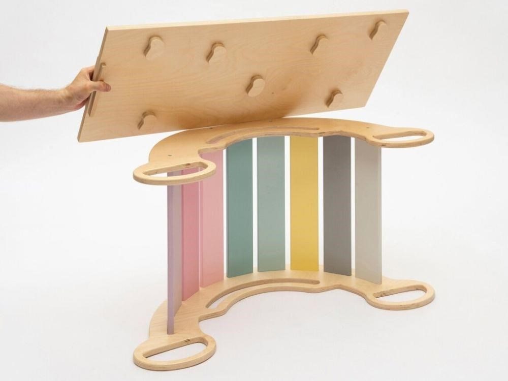 Kvalitní dřevěné oboustranné prkno (pouze k houpačce SMILE) má všestranné využití. Z jedné strany zábavná skluzavka, po které se děti sklouznou třeba na měkkou žíněnku, na druhé straně lezecká deska s úchyty, která rozvíjí pohybové dovednosti vaší holčičky i chlapce. Oboustranná deska je doplňkem k Montessori houpačce SMILE. Položená na boční hraně houpačky smile vytvoří dětem praktický stoleček ke svačince i k malování. Oboustranné prkno není možné používat s Montessori houpačkami 5in1 ELIS DESIGN. Prkno je širší než naše duhové a dřevěné houpačky. PRKNO JE DOPLŇKEM POUZE K MONTESSORI HOUPAČKÁM SMILE, kterou promění v dětský stoleček..
