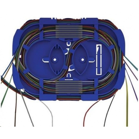 - dva hřebínky, pro celkovou kapacitu 24 ochran svárů. (Uchycení a konstrukční řešení výklopných hřebínků umožňuje vedení vláken i pod nimi)
