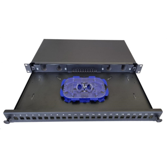 Optická vana výsuvná 1U, 24x SC simplex (24x LC duplex, 24x E2000) s kazetou OPTRONIC pro 24 svárů, černá