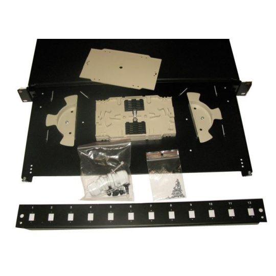 Optická vana výsuvná 1U, 12x SC duplex s kazetou na 24 svarů, černá