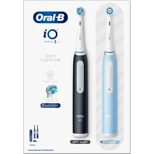 Oral-B iO Series 3 Duo Black/Blue duo pack, mikrovibrace, chytrý senzor tlaku, technologie ochrany dásn