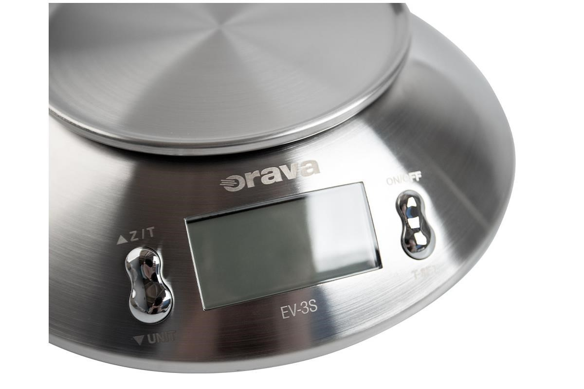 ORAVA EV-3 S digitální kuchyňská váha, LCD displej, přesnost 1 g, funkce TARE, nerez, časovač